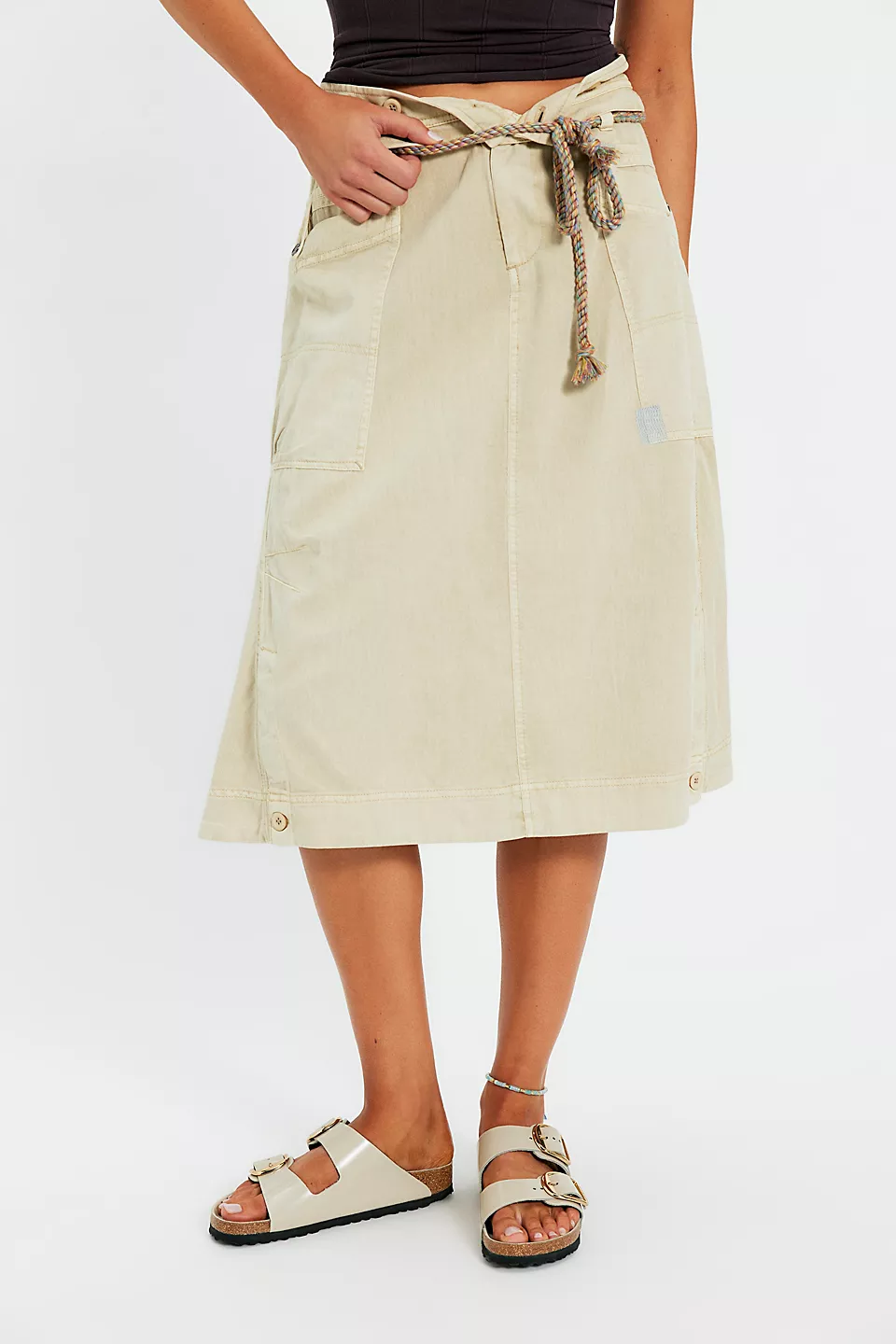- Details: two straps, each with a large, individually adjustable metal pin buckle; color-coordinated details