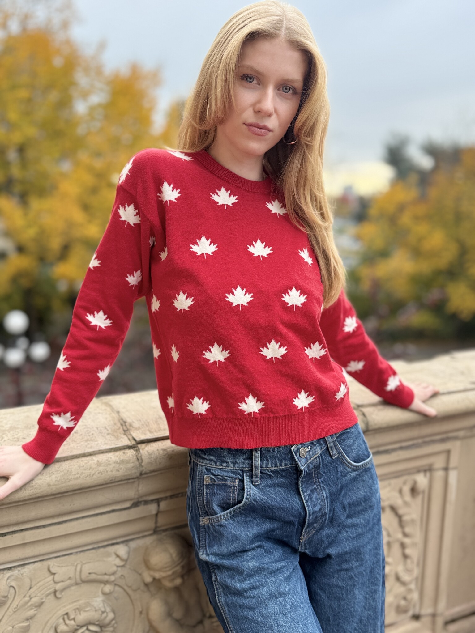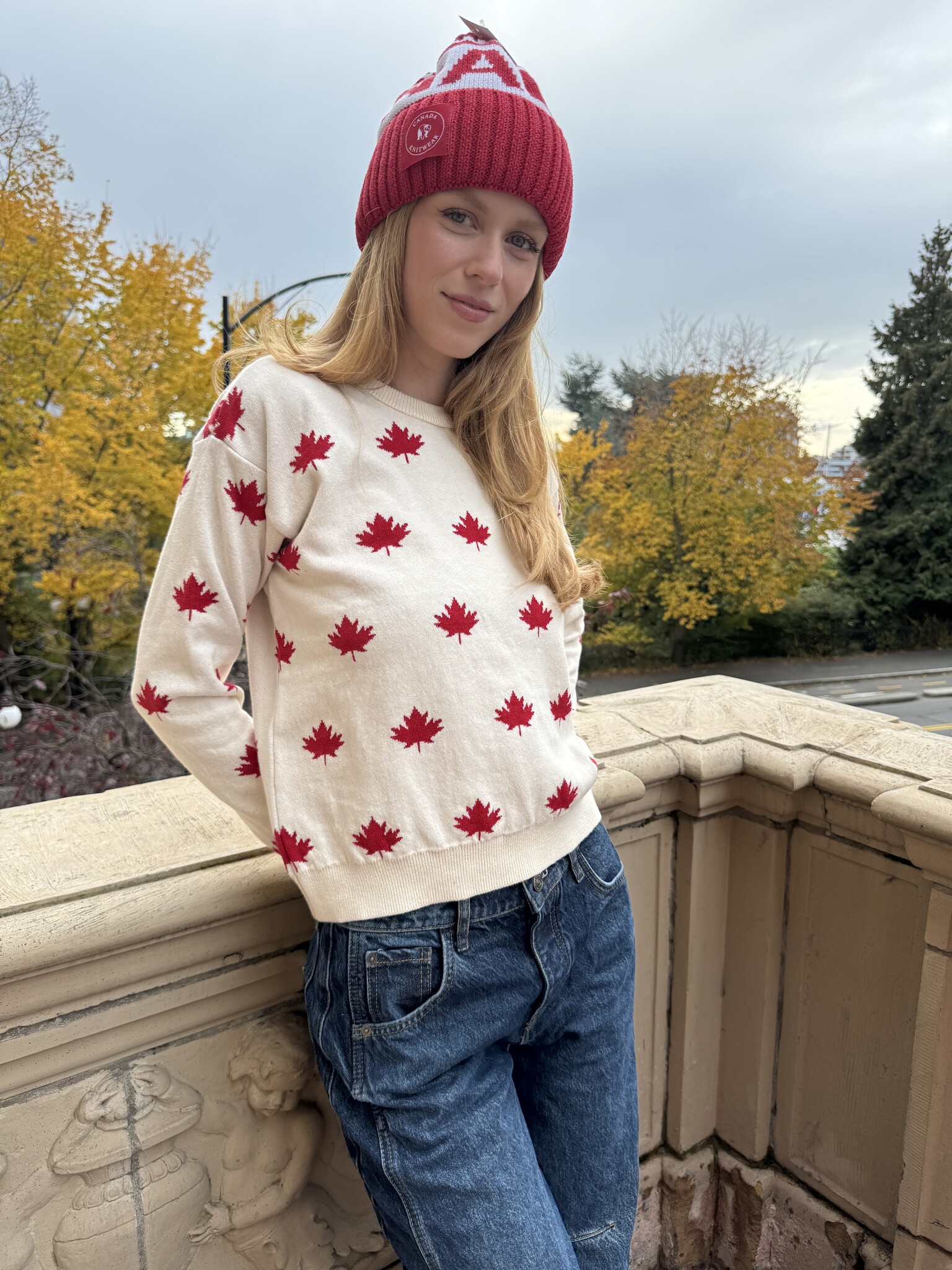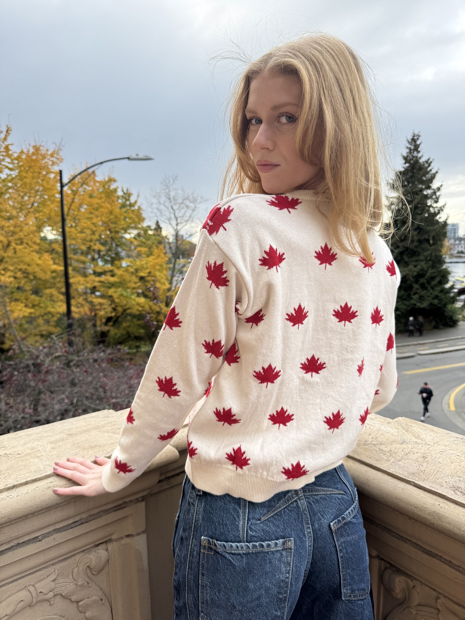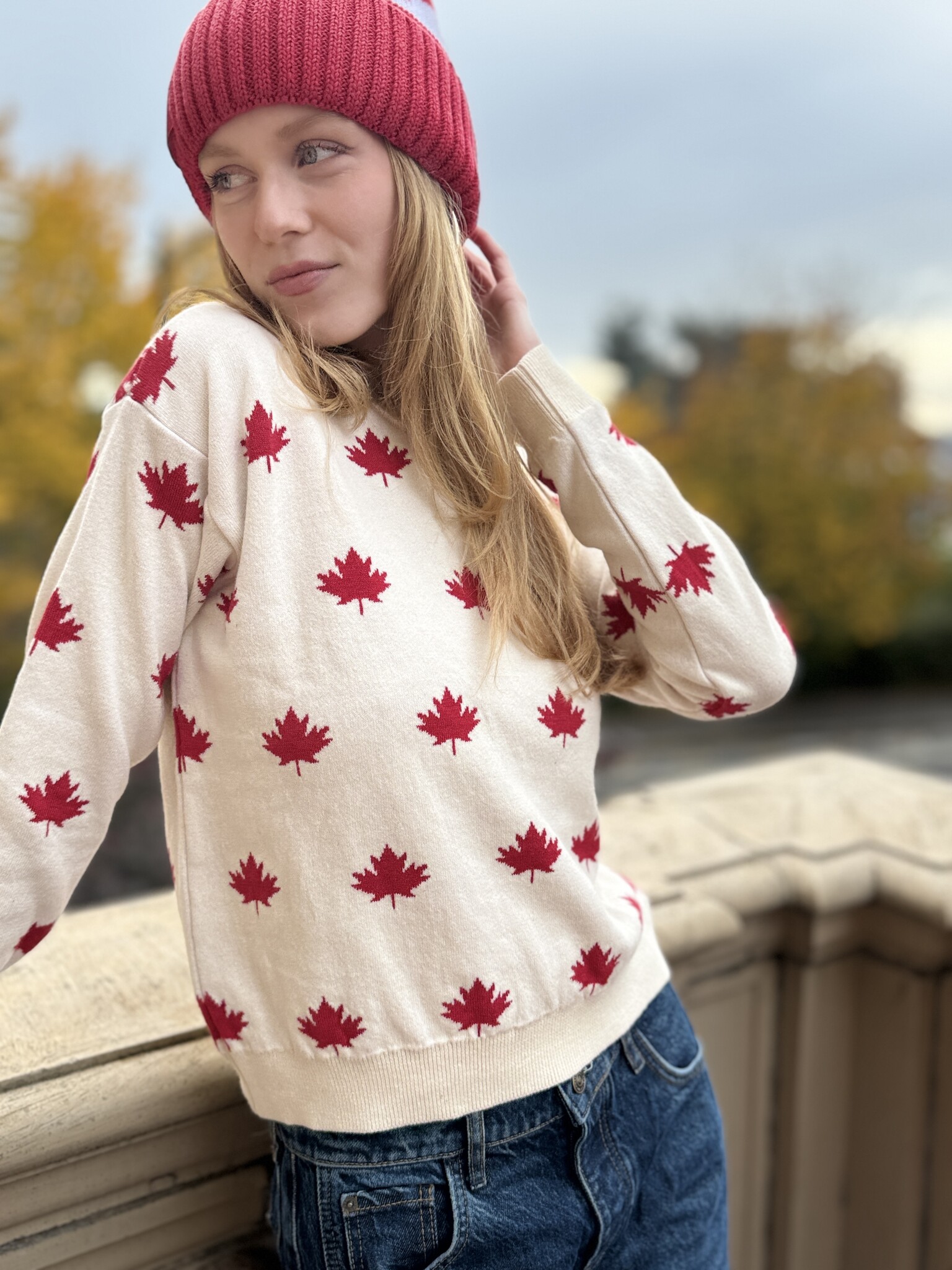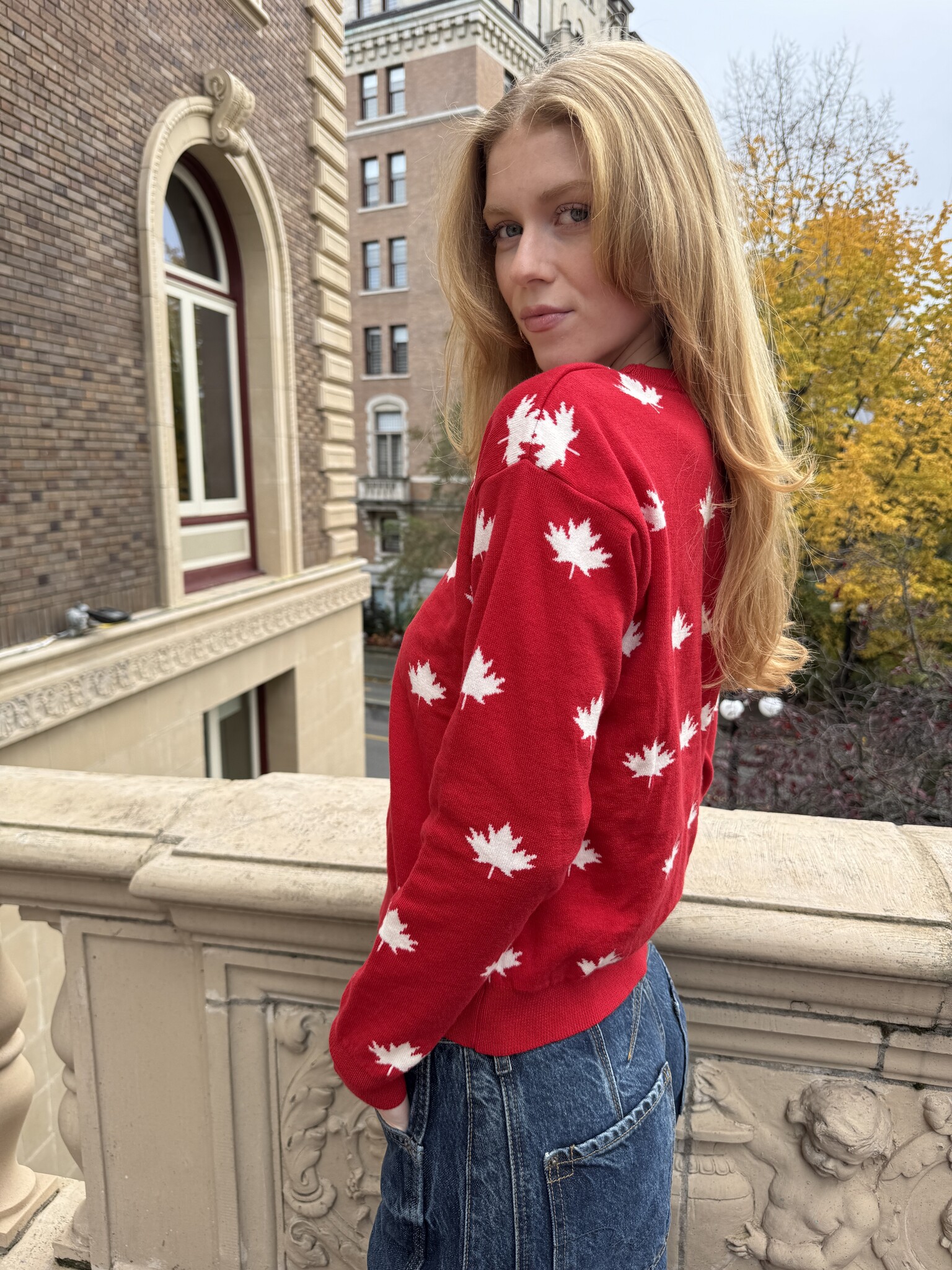 - Models are 5'10" (in red sweater) and 5'9" (in natural sweater), both wearing size M.