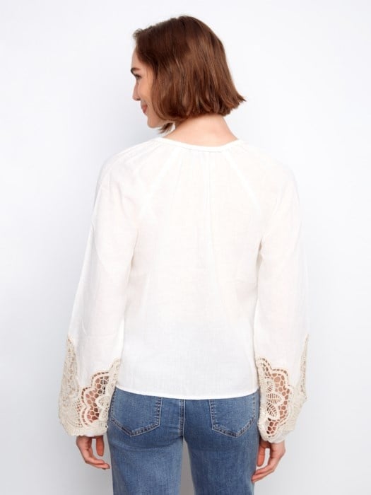 Embroidered Linen Blend Blouse