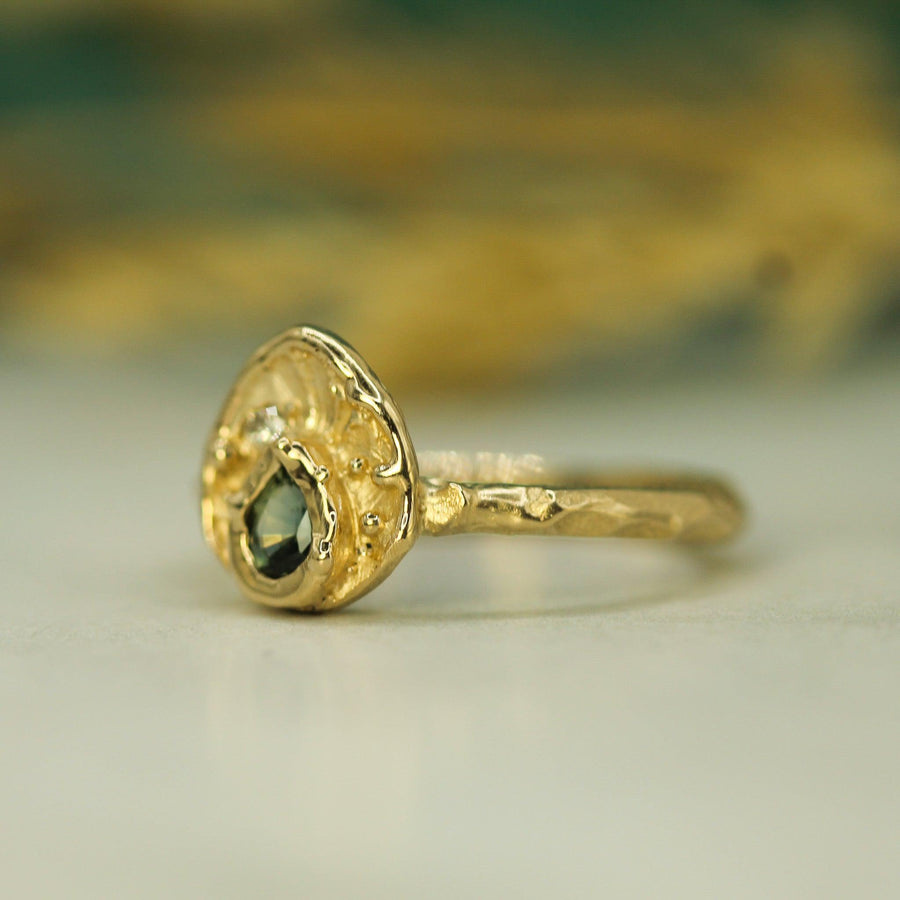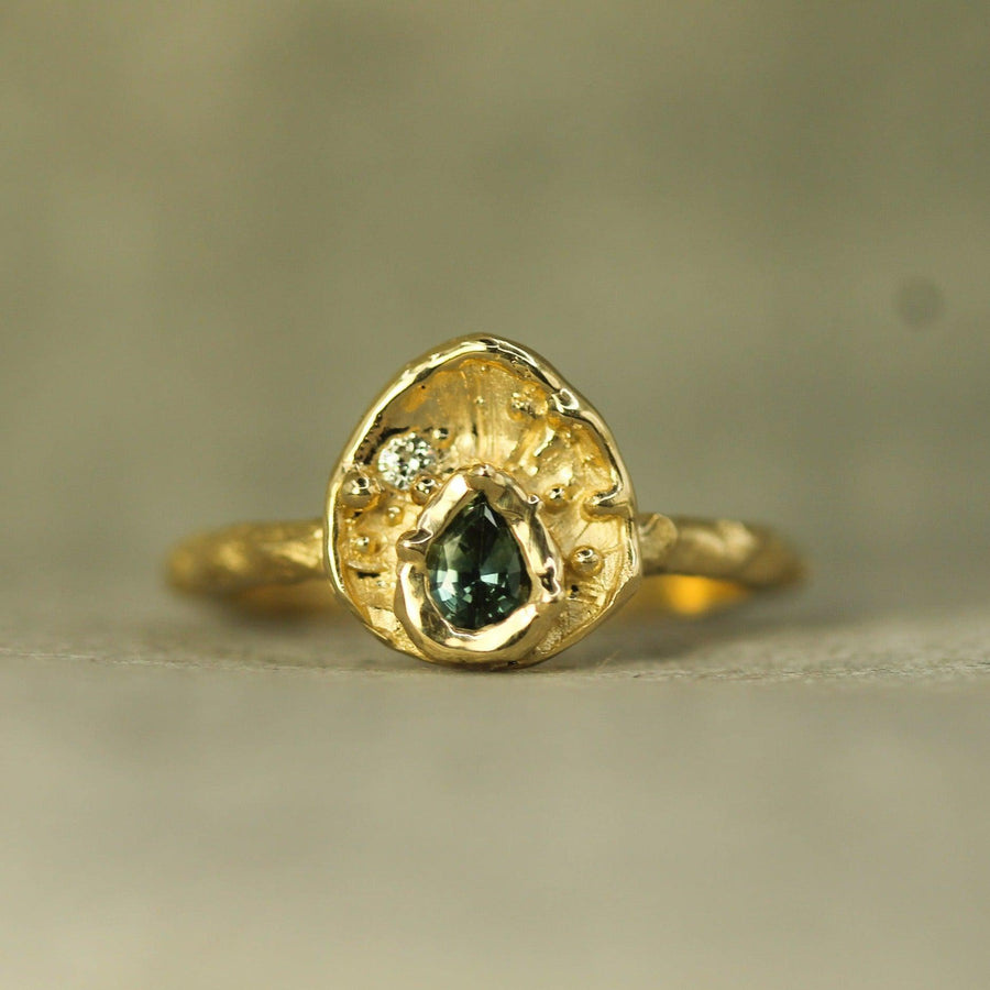- .5ct teal sapphire with an accent diamond