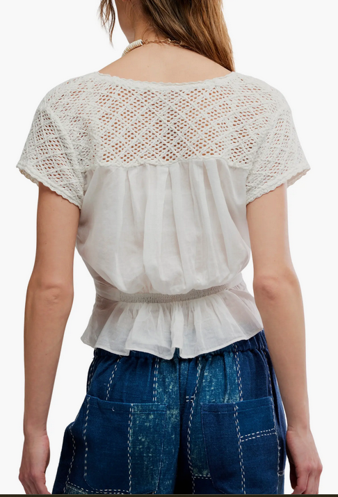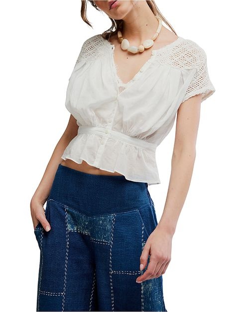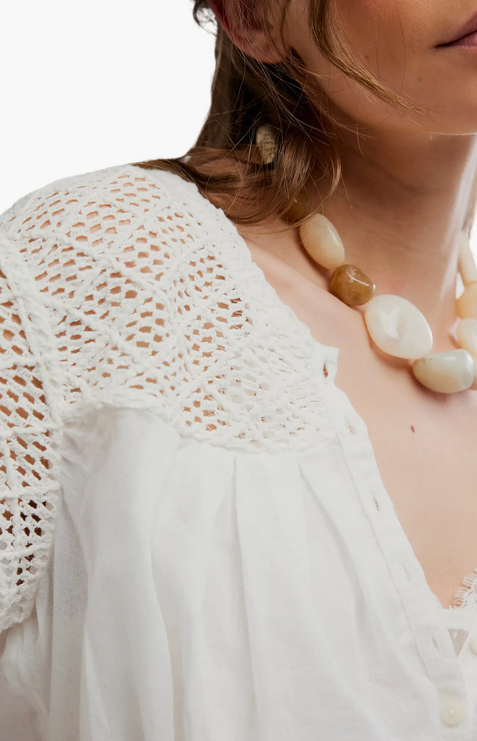Free PeopleFree People Gemma Embroidered Top C$108.00 Make a choice COLOR: CLEAN IVORY, SIZE: XS COLOR: CLEAN IVORY, SIZE: S COLOR: CLEAN IVORY, SIZE: M COLOR: CLEAN IVORY, SIZE: LColor: *Clean IvorySize: *XSSMLAdd to cartLogin for wishlistBuy NowDescriptionShareLightweight white blouse with lace-knit shoulders, a soft V-neck, button front, and a flattering peplum waist for an easy, feminine look. Facebook Whatsapp