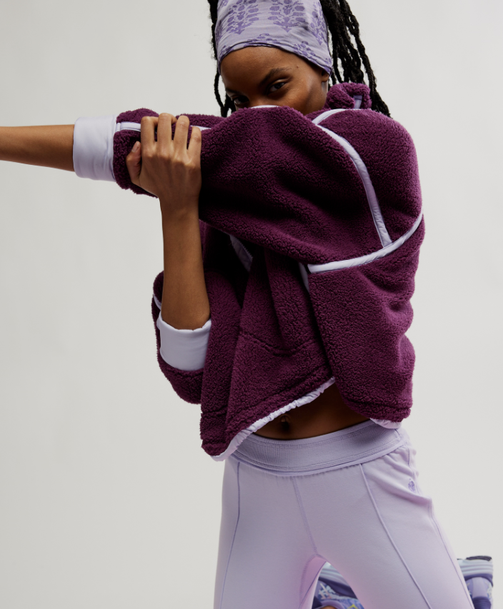 Features: Soft fleece with a warm feel; durable top-applied nylon seams; zipped front pockets; high-neckline with half-zip closure; drop-shoulder sleeves; drawcord at bottom hem for adjustability; thick contrast cuffs.