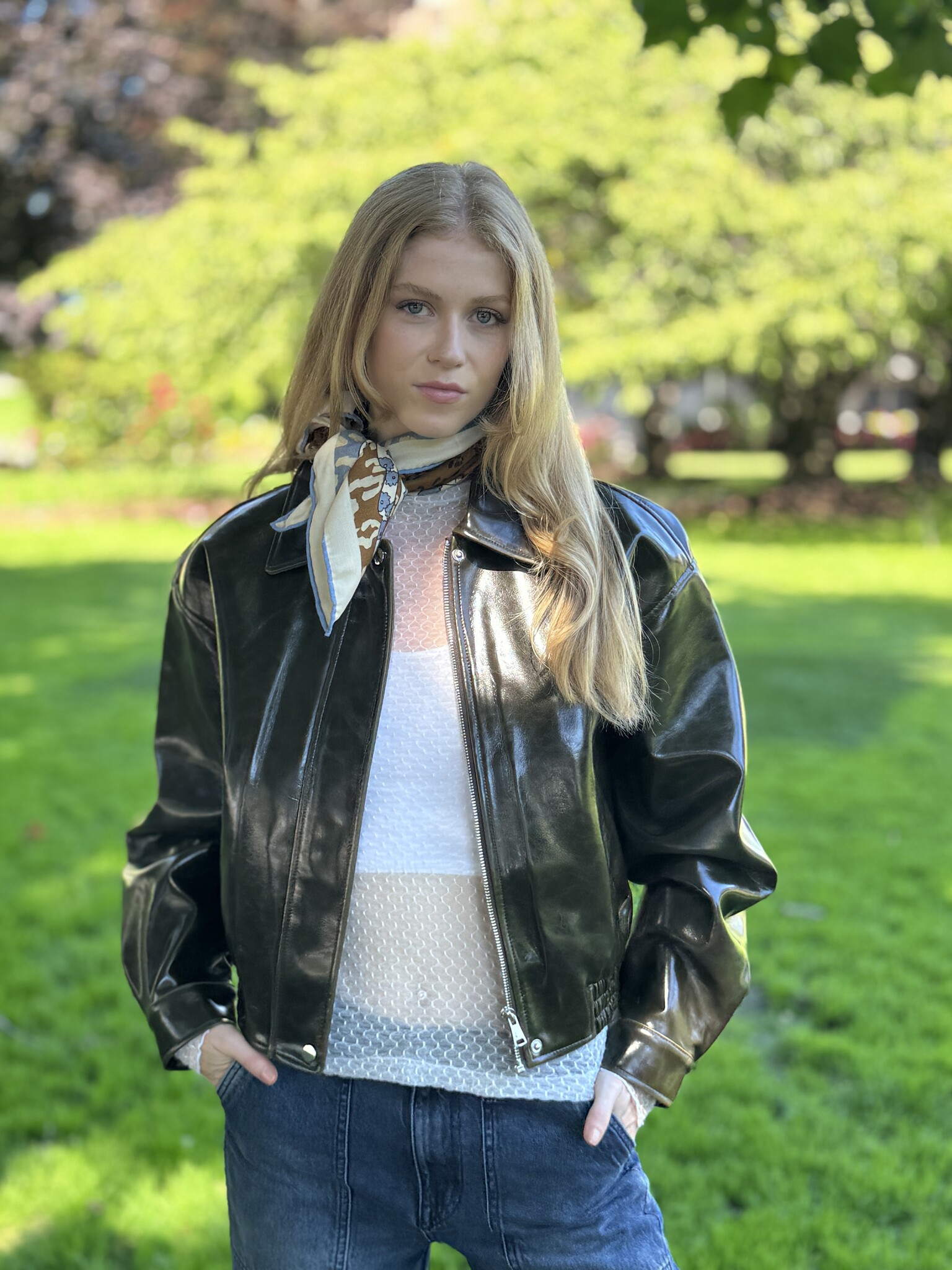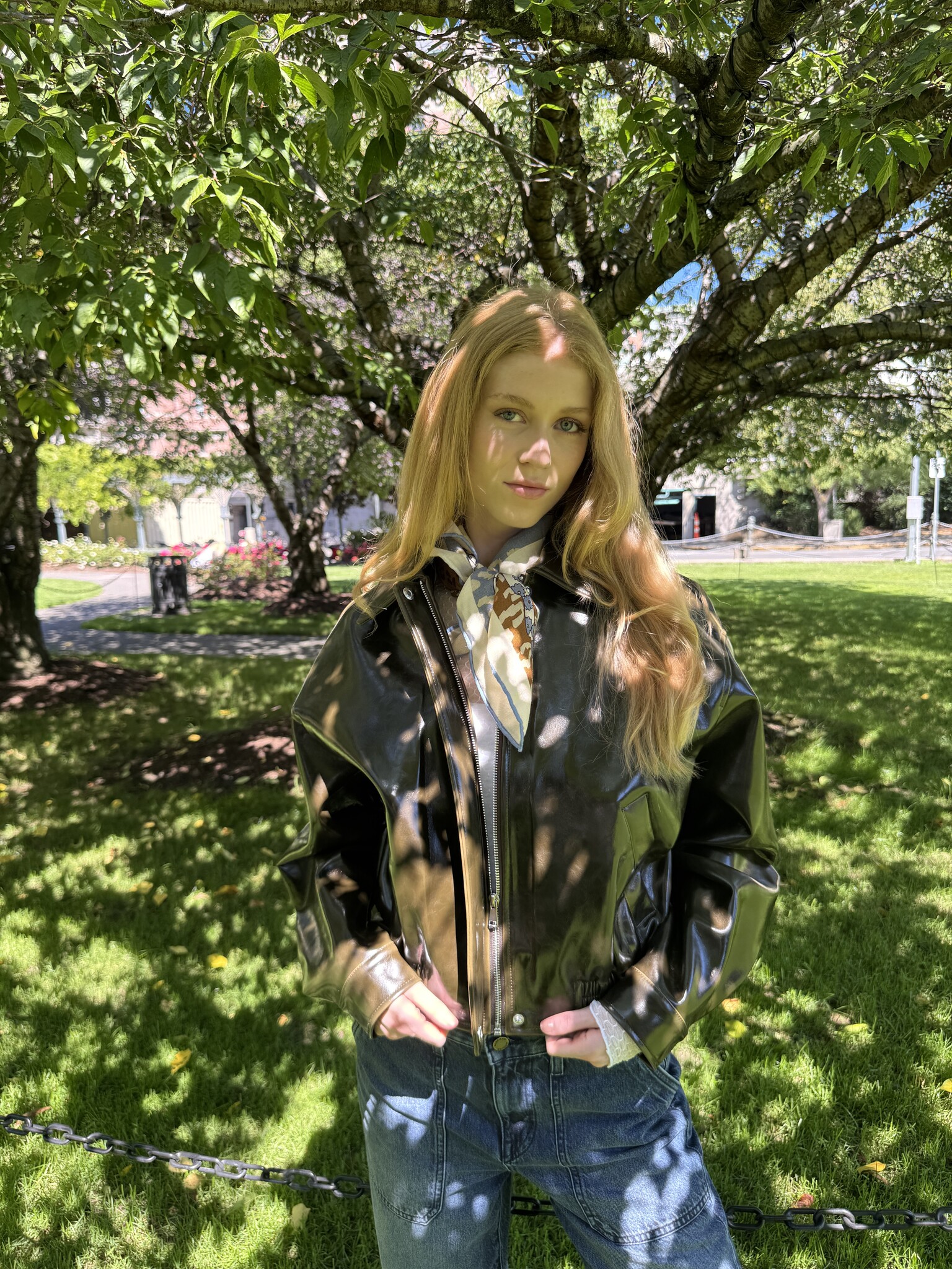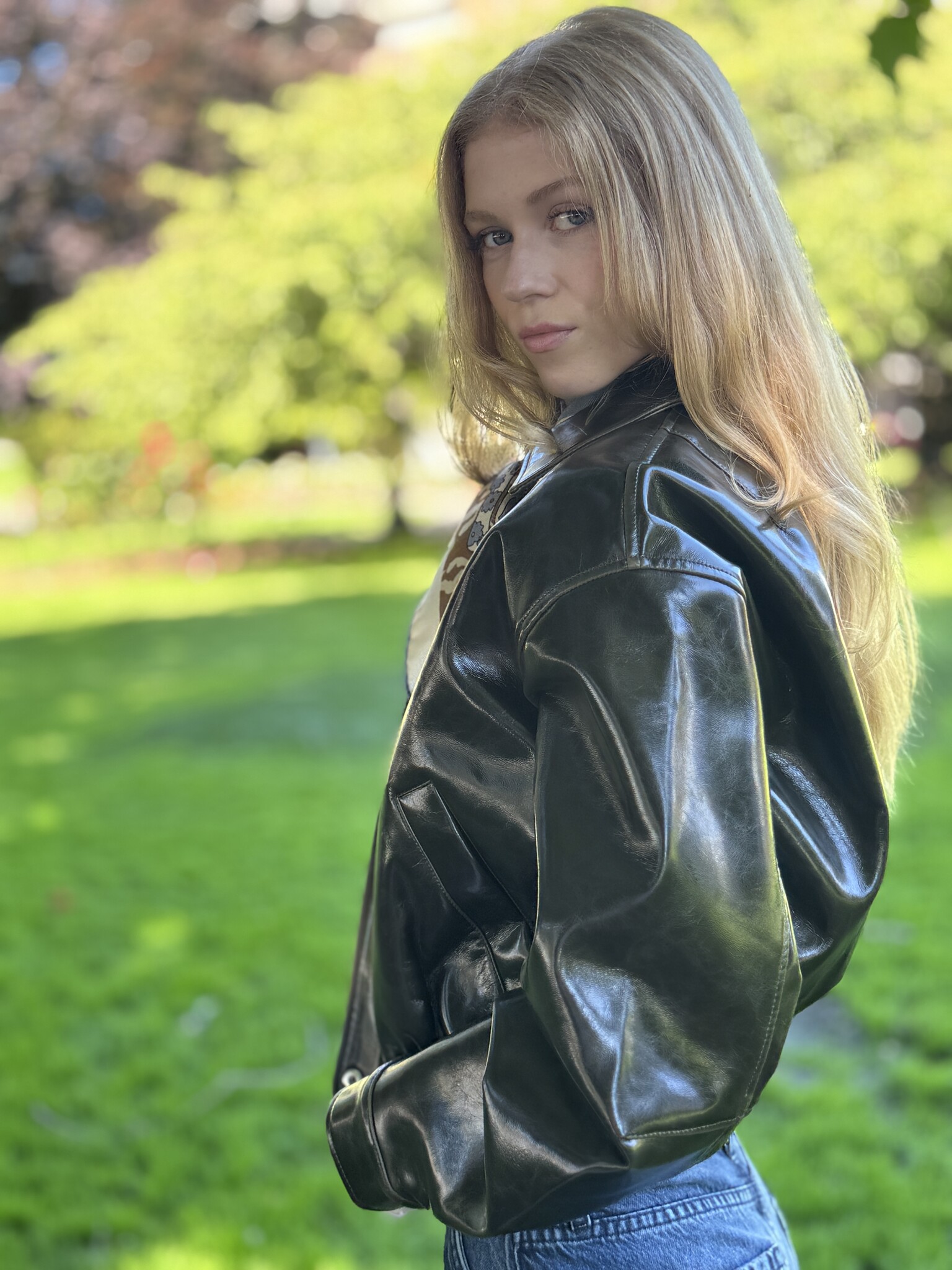 Product descriptionBomber in imitation leather vinyl Bright texturePockets on the sidesHidden zip closure at the front Sustainable and environmentally friendly matterNote: *appears lighter(more Khaki) in person Size:Tip: If you're hesitating between two sizes, choose the smallest one instead.Reference: CHC25601-KAKI
