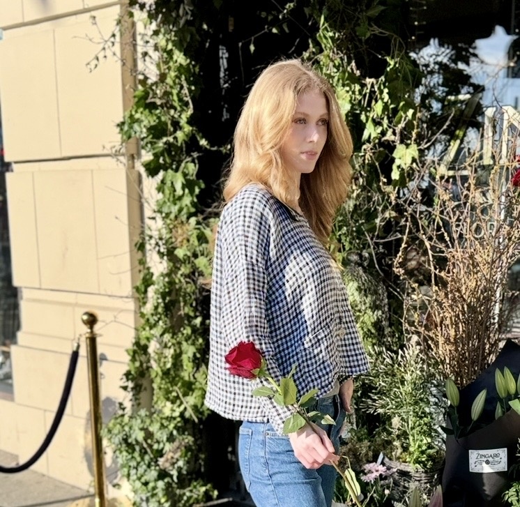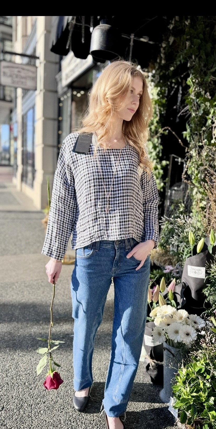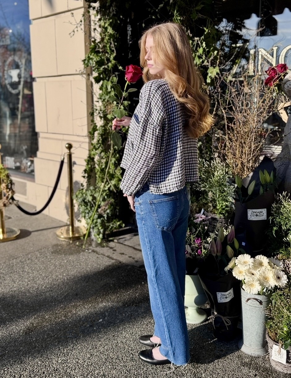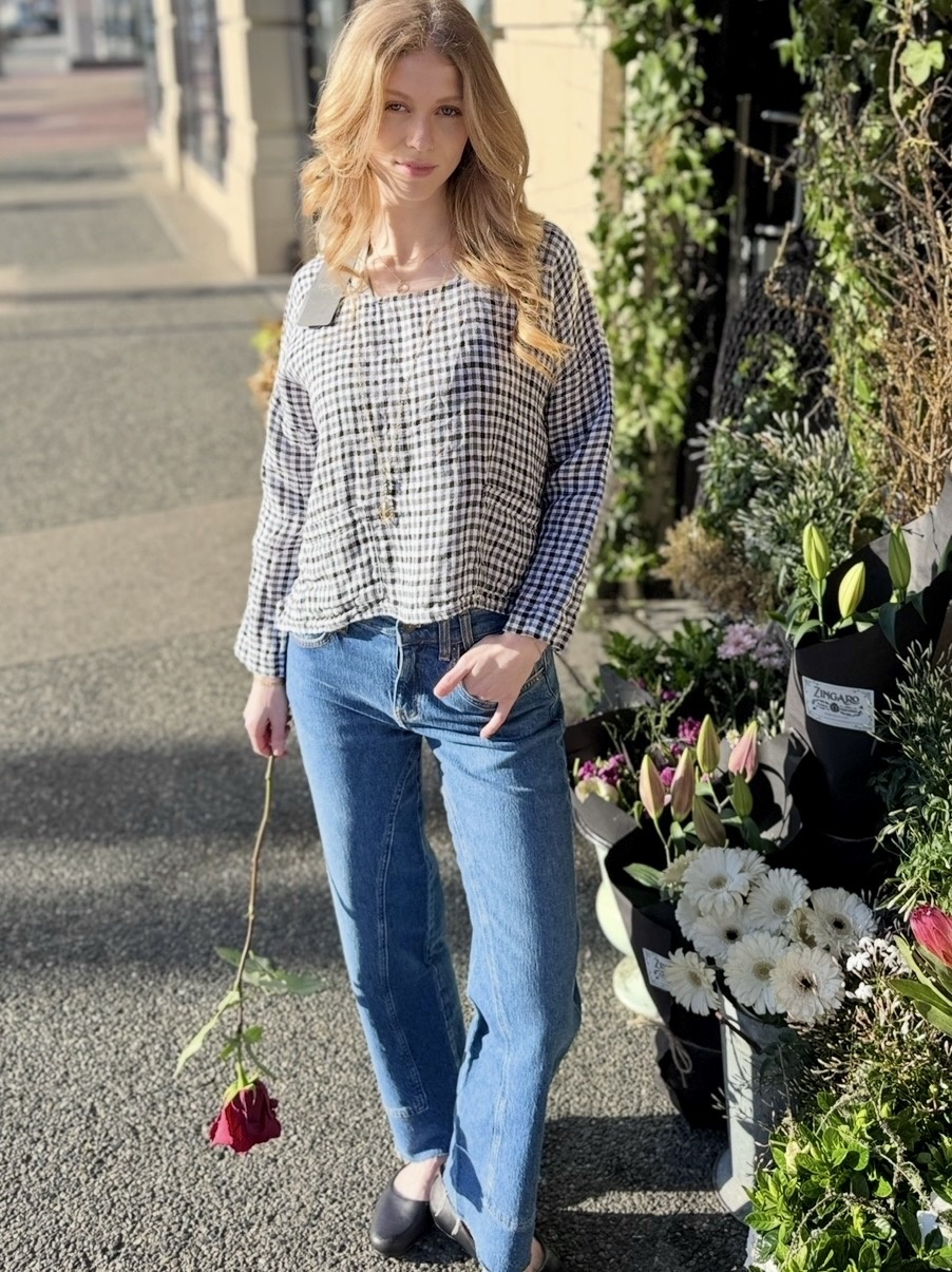 Gingham Linen Short Sleeve Top