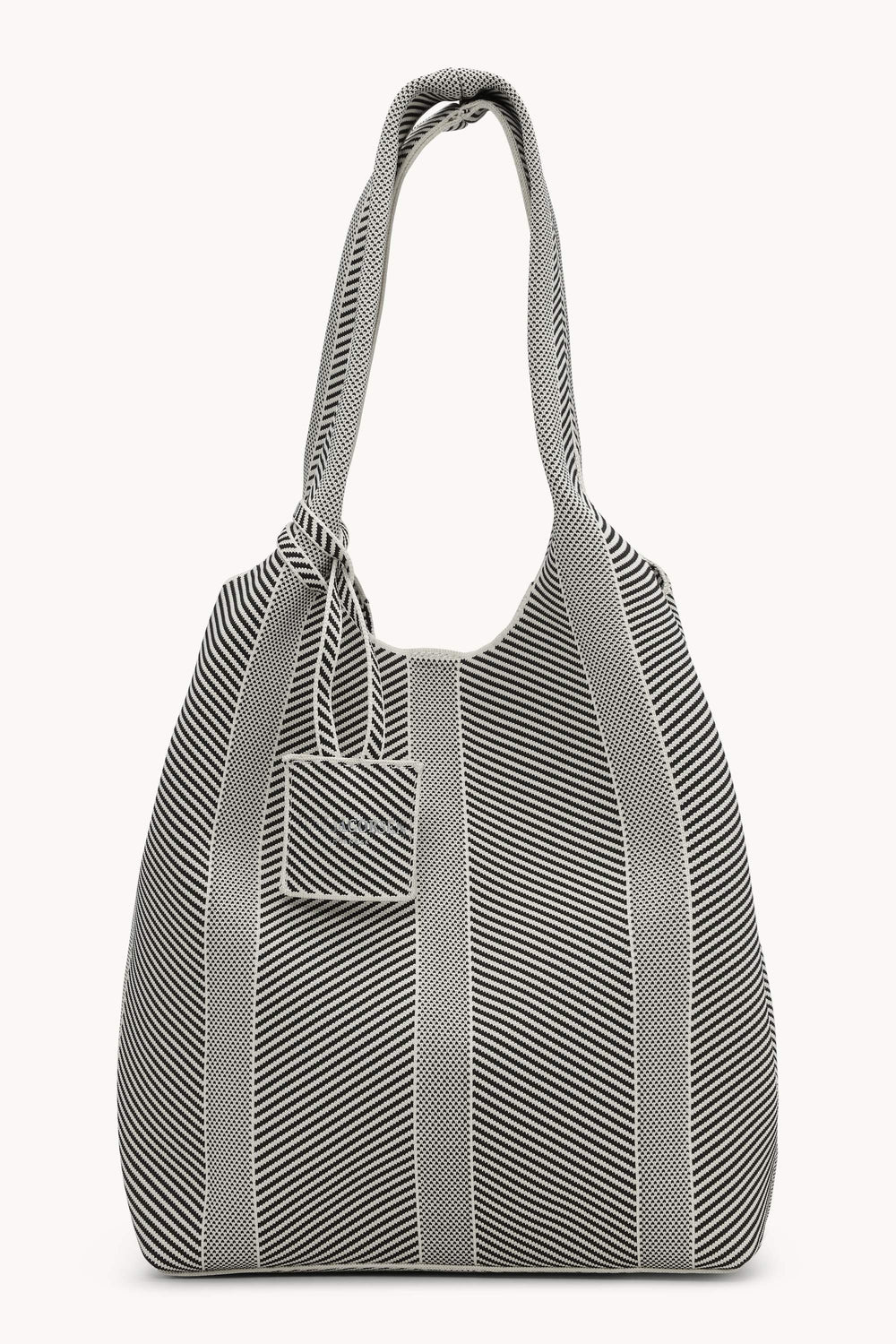 Made from knitted fabric with a trendy pattern, the bag features a matching logo tag that can be used to organize or secure your keys