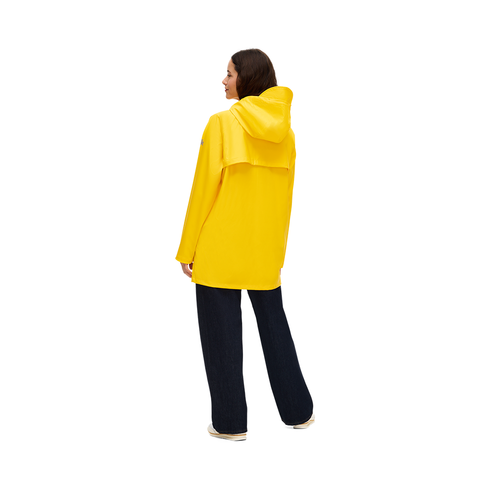 Strategically sealed seams, a structured hood with drawcord, and a back mesh vent balance coverage and breathability. Finished with a 2-way zip and reflective details, it’s rainwear that works wherever the day takes you.