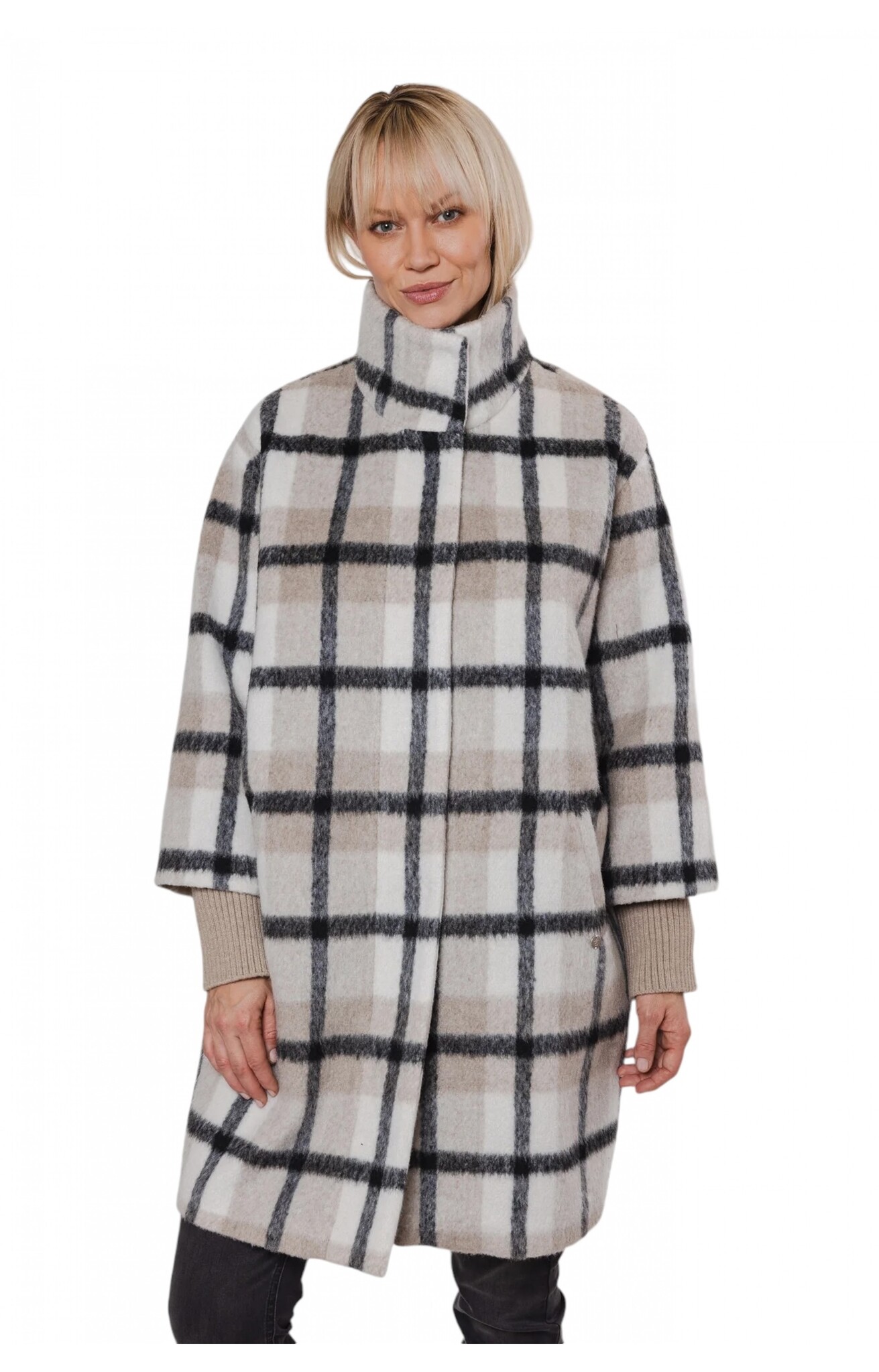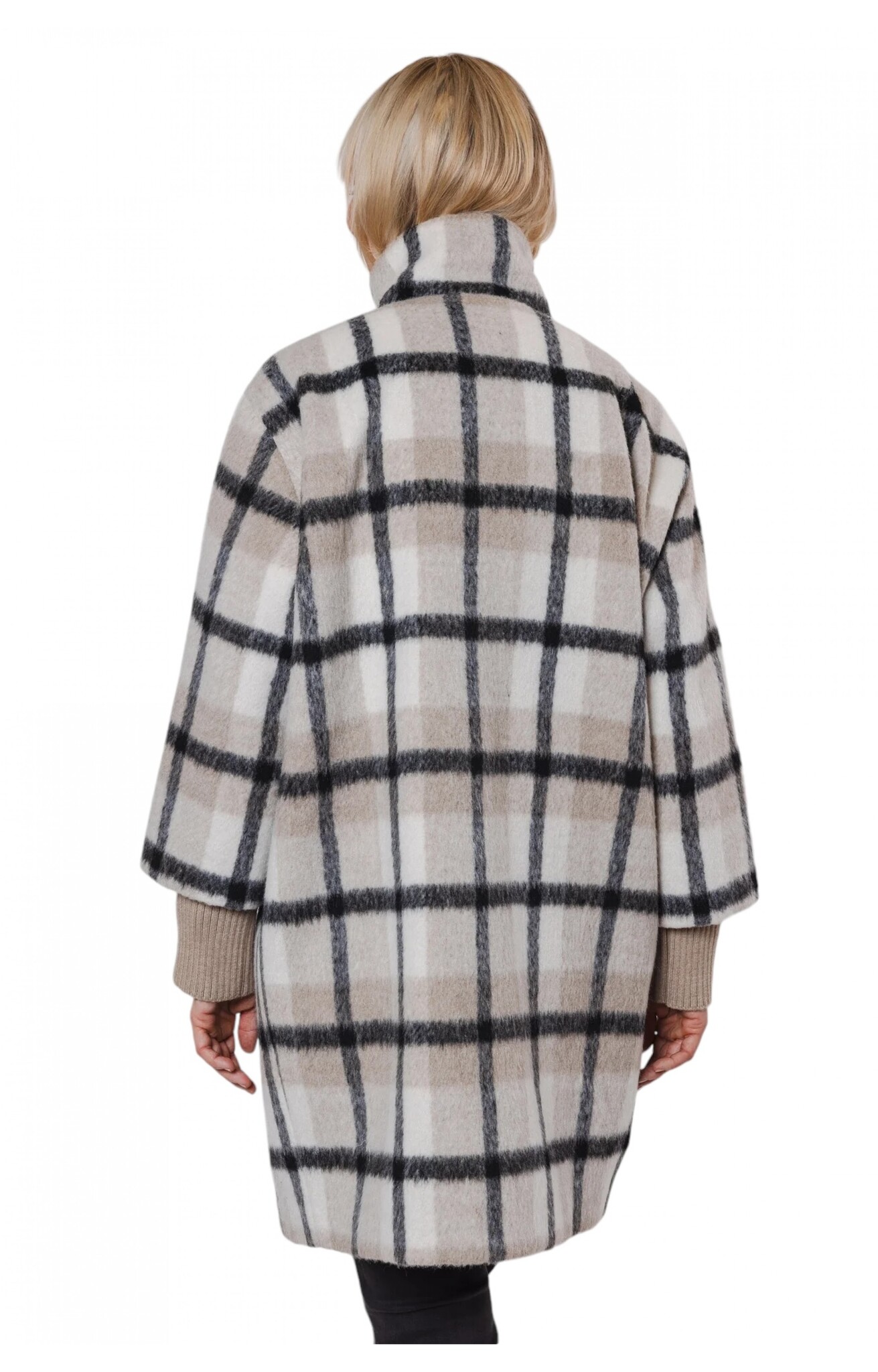 - Rino Pelle plaid midi coat with sporty ribbed cuffs.