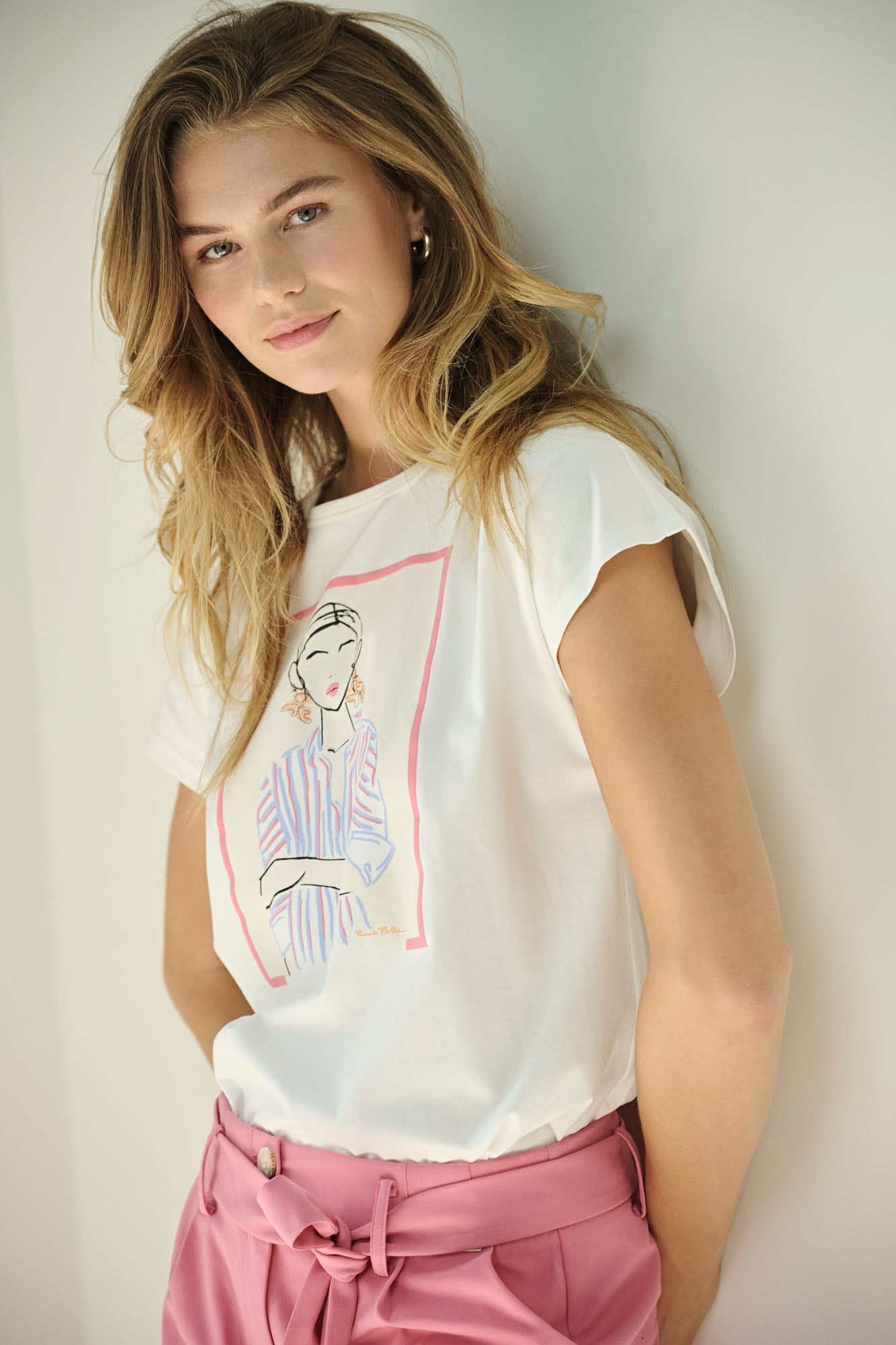 Rino & PelleRino & Pelle Nanouk T-Shirt C$68.00 Make a choice COLOR: SNOW WHITE, SIZE: XS COLOR: SNOW WHITE, SIZE: S COLOR: SNOW WHITE, SIZE: M COLOR: SNOW WHITE, SIZE: LColor: *Snow WhiteSize: *XSSMLAdd to cartLogin for wishlistBuy NowDescriptionShareEmbrace playful chic with this soft cotton T-shirt. Designed in a slightly relaxed fit with subtly angled cap-style sleeves, it features a striking illustration of a woman framed in soft pink for a modern, artistic touch. Facebook Whatsapp