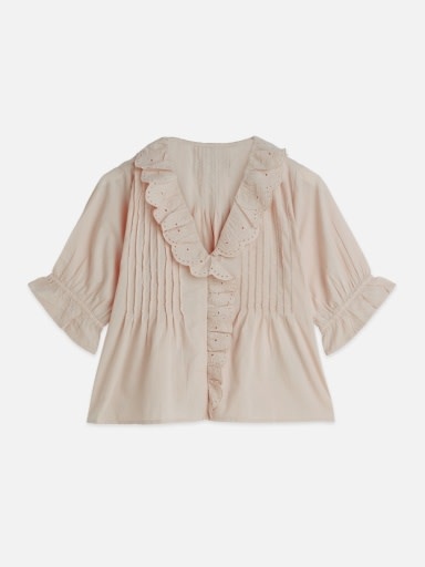Short sleeve blouse with embro