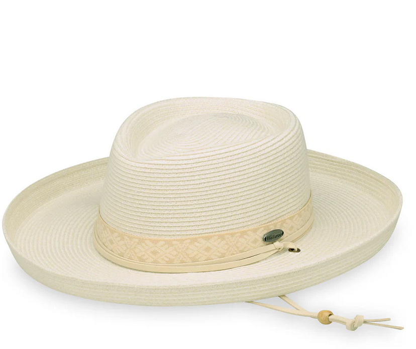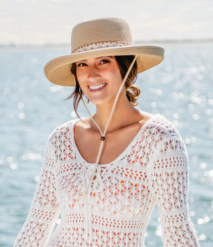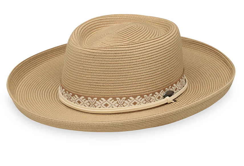 Step out in style with this distinguished UPF 50+ Flexi-Weave fabric gambler hat, featuring a classic oval crown, patterned trim, and a sleek pencil brim. The suede and leather chinstrap ensures a secure fit on breezy days, or it can be tucked away for a more refined, sophisticated look. Perfect for any occasion, from casual outings to elevated experiences.