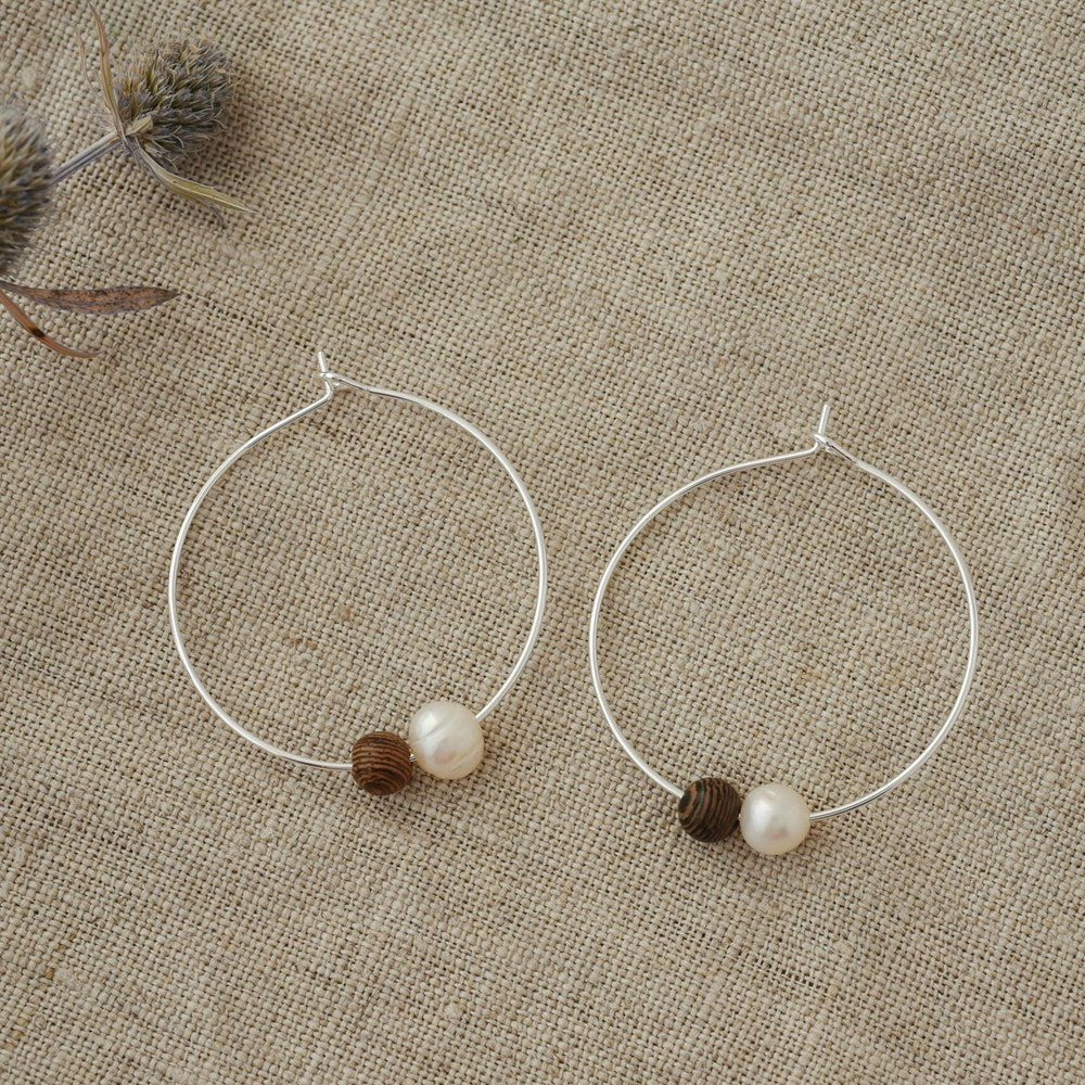 Earthy Whispers Hoops Wood/Pearl