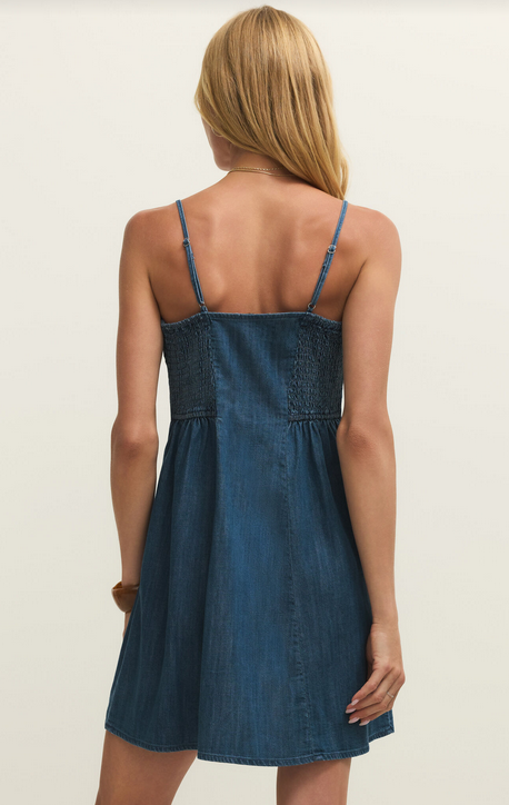 Z SupplyZ Supply Angel Eyes Denim Mini Dress C$158.00 Make a choice COLOR: MEDIUM INDIGO, SIZE: XS COLOR: MEDIUM INDIGO, SIZE: S COLOR: MEDIUM INDIGO, SIZE: M COLOR: MEDIUM INDIGO, SIZE: LColor: *Medium IndigoSize: *XSSMLAdd to cartLogin for wishlistBuy NowDescriptionShareEffortlessly cool denim mini dress with a flattering A-line fit, delicate spaghetti straps, and button-front detail. Lightweight and versatile. Perfect for sunny days, casual outings, or layering year-round. Facebook Whatsapp